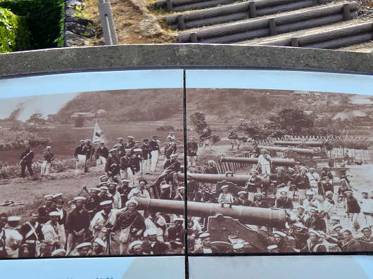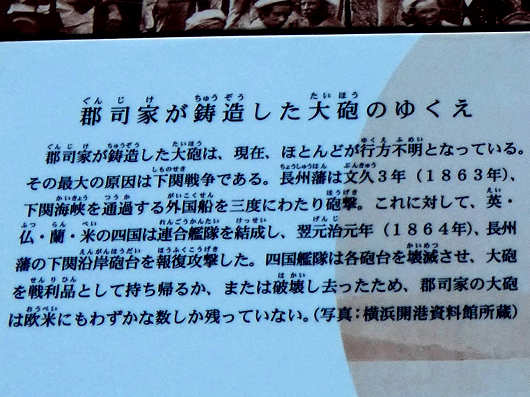 この写真は歴史の教科書にも出てくる有名な写真で、下関戦争に敗れて列強四国に占領された長州藩の砲台です。この時に使用された大砲が郡司鋳造所で造られた「長州砲」なんですよね。