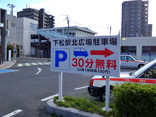 下松駅北口広場には10台ほどの車が停められる30分まで無料の駐車場があるのでここに車を停めました。