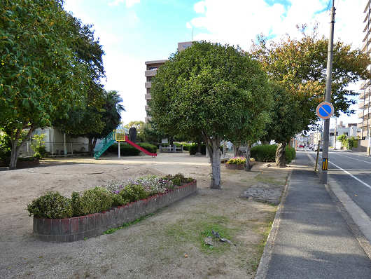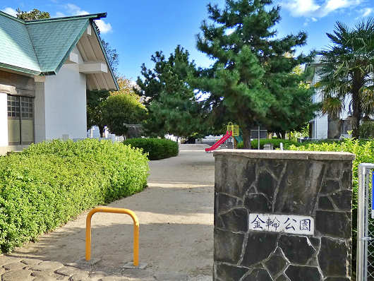 金輪公園は繁華街の中のオアシスのような小さな公園で、公園と車道の間にはフェンスも無いんですよね。