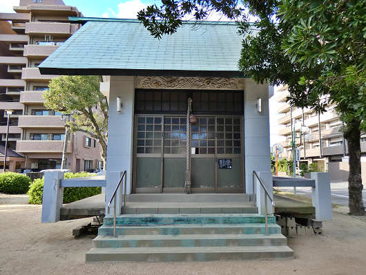 そして狭い敷地内には鳥居が建っていて、コンクリート造りの小さな社殿もありました。この神社は「金輪神社(かなわじんじゃ)」といって、この社殿の横に下松市のキャッチフレーズになっている「星ふるまち 下松」の名前の由来となった松の木があります。