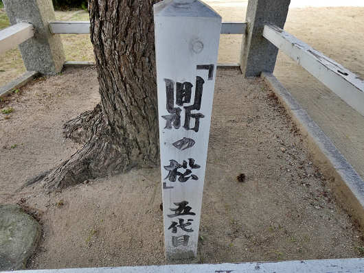 この松は「鼎の松(かなえのまつ)」といいますが、根元にはこの様な木柱が立てられていて、現在の松は五代目になるそうです。