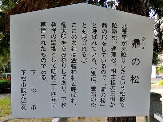 ここには木札も立てられていて、ここに下松市の名前の由来となった伝説が書かれています。下松市には「北辰降臨伝説」というのがあって、北辰星(北極星)が松の木に降ってきたと伝えられていて、この時に星が降って来たのがこの「鼎の松」だそうです。