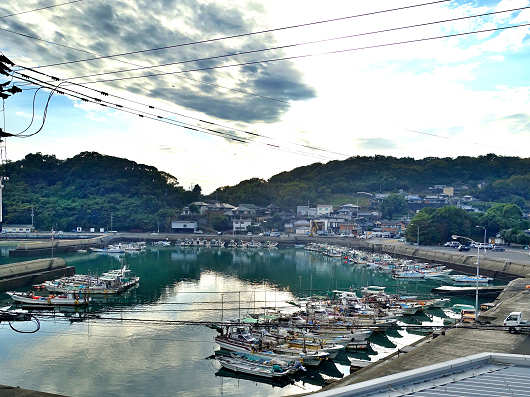 窓からは竹崎漁港が目の前に見えました。最上階の部屋だともっと眺望がいいと思いますが、この部屋だけが喫煙可だったので、今回はあえてこの部屋を選んだんですよね。