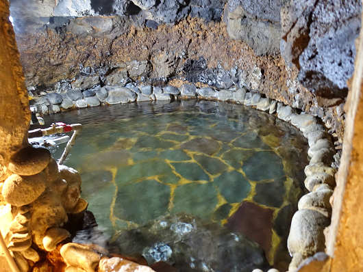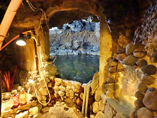 そして1階の建物外には先代が岩盤を掘って作ったという「珍しい 岩穴風呂」と書かれた洞窟露天風呂がありました。