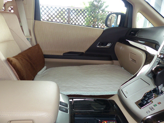 そして助手席と同じように長いクッションをボックスとシートの上に敷いたらこうなります、