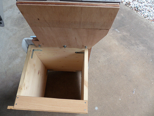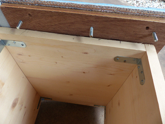 ボックスを上から見た状態です、3ヶ所の穴にボルトを通しています、ボルトを通したところ以外に4ヶ所穴が開いてるのは間違えて穴を開けた跡です(笑)