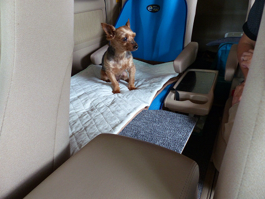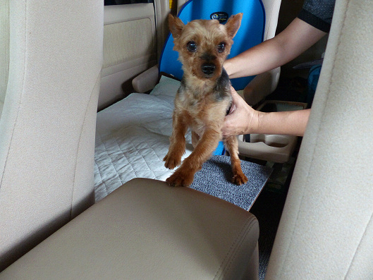 急ブレーキを踏むたびに床へと転がり落ちて何度も痛い思いをさせていました、床からシートまでの高さは40Cm近くあるので、高齢のりゅう君には骨折の心配もありました、かと言って床に座らせても外の景色が見えないからか、人間との距離が遠いからか?ソワソワして落ち着きませんでした、