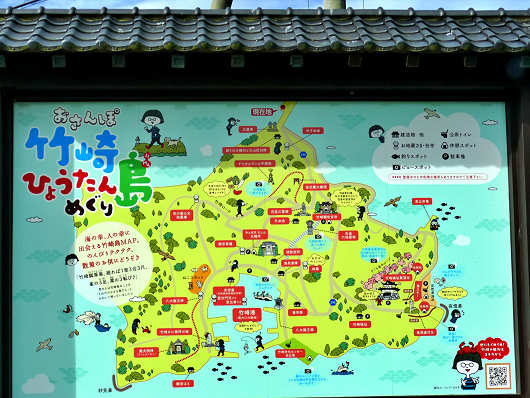 お宿へは県道295号から漁港沿いの道へ左折しましたが、この分岐点には「竹崎 ひょうたん島めぐり」と書かれた看板が立っていました。ひょうたん島は正式には竹崎島といって、県道295号はこの島へ続いているので、これから橋を渡って竹崎島へ向かいますが、島といってもわずか10mほどしか離れてないので、いつ橋を渡ったのかも気付かない程です(笑)