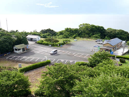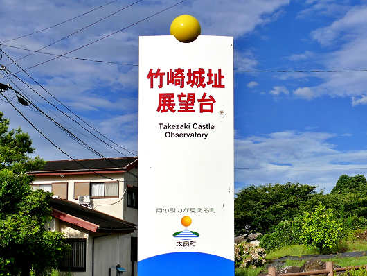 標識の位置から左折して200mほど進むと、道路は行き止まりになって「竹崎城址展望台」と書かれた看板や駐車場、トイレなどが見えてきたのでここに車を停めました。