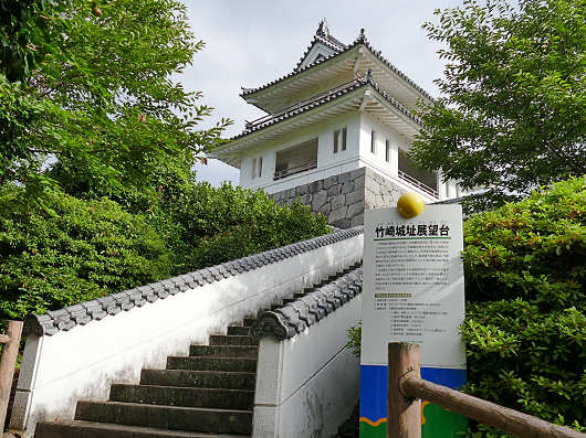 このお城の天守閣ような建物が道越漁港からも見えていた「竹崎城址展望台」です。