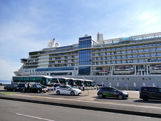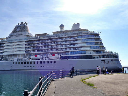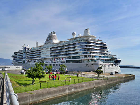 この日別府へ寄港したクルーズ船は、シルバーシー・クルーズが運航する総トン数約55051t、全長244mの「シルバー・ノヴァ」です。