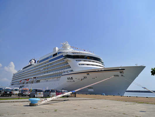 「飛鳥Ⅲ」は今年の7月に就航したばかりの新造船で、別府国際観光港へは初寄港になります。この船は全長230m、総トン数52200t、旅客定員744人のクルーズ船で、日本の海運会社が所有するクルーズ船としては国内最大級になります。