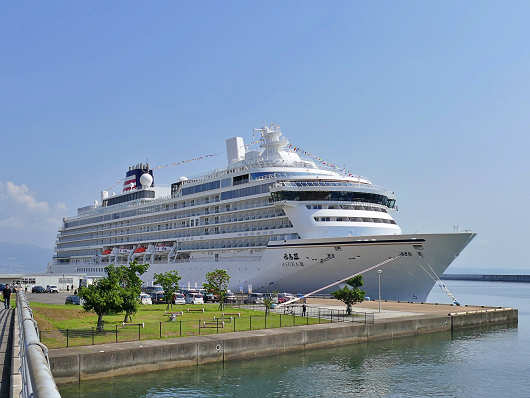 2週間ほど前の記事になりますが、この日は別府国際観光港に日本の豪華クルーズ船が寄港したのでさっそく見物に行きました。