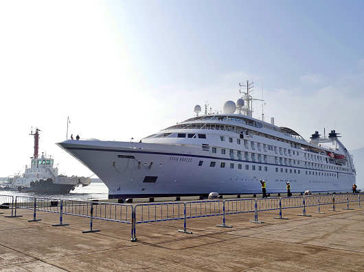 クルーズ船「スター・ブリーズ」は総トン数が約13,000t、全長は約159mと、外国のクルーズ船のなかでは小さな船なので第4埠頭には余裕で停泊していました。この日は早々と別府国際観光港を後にしましたが、多くの乗船客が自転車に乗ってどこへ向かったのかとても気になりますね。
