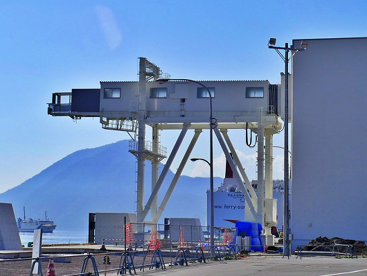 ターミナルビルの周辺はまだ工事中で近くには行けませんでしたが、色んな角度から撮影をしていると「みかさ」らしき船が港内へと入って来ました。(画像の左下に小さく写っている船です)