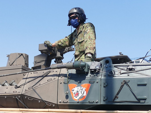 車体には第8師団の兜の鍬形マークに白虎が描かれていたので、第8師団第42即応機動連隊というのは分かりましたが、1両だけだったのでどこの駐屯地からやって来た車両なんでしょうね?