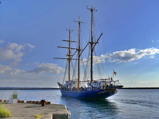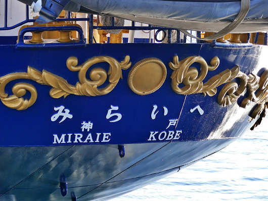 帆船・みらいへは全長52m、総トン数362tの帆船で、日本丸や海王丸が全長が110m、総トン数が約2600t余りあるのに比べたらとても小さな帆船です。この帆船は神戸港を母港として体験航海事業を行っているので、別府港へ寄港することは滅多にない珍しい帆船なんですよね。