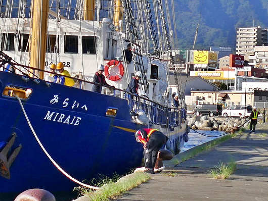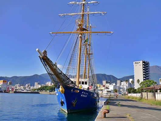 この日別府港へ入港していたのは、非営利法人が所有していて一般向けに体験航海などを行っている「帆船・みらいへ」です。