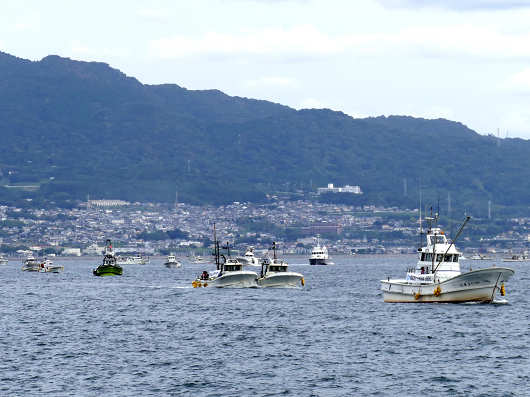 この日はステルス護衛艦「みくま」の入港風景を撮影しようと、別府国際観光港へやって来ましたが、思いもしなかったこの様な光景が見れてラッキーでした。しかも漁業についてはほとんど知識が無かったので、帰ってから色々と調べてとても勉強になりました。