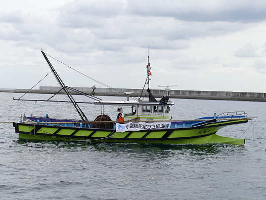ちょっと派手な色をしたこの漁船には「小型機船底びき網漁業」と書かれていました。底引き網漁を行う漁船の中でも総トン数が15t未満の漁船を小型機船と呼ぶそうです。