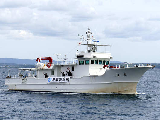 この船は海水の温度分布や塩分濃度、水産資源の調査などを行う大分県の漁業調査船の「豊洋」です。