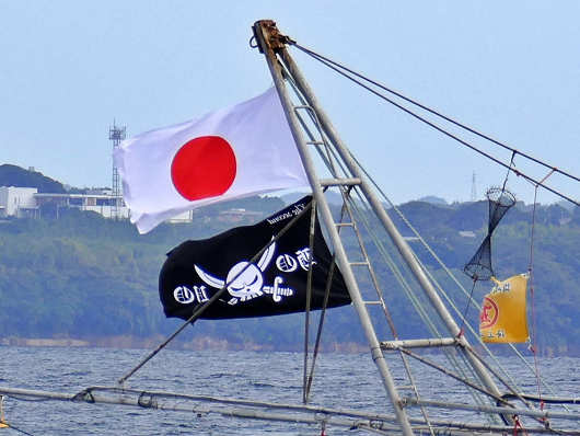 日章旗の下には海賊船のような旗がはためいていました(笑)