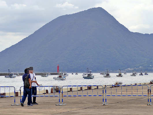 記事が前後しますが、ステルス護衛艦「みくま」が入港するのを岸壁で待っていると、突然何隻もの漁船が港へと入ってきました。