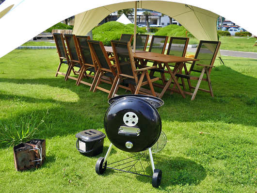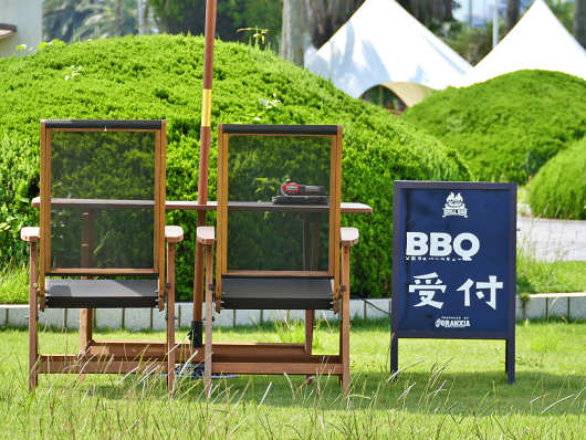 芝生広場の一角にはバーベキューの受付もありました。