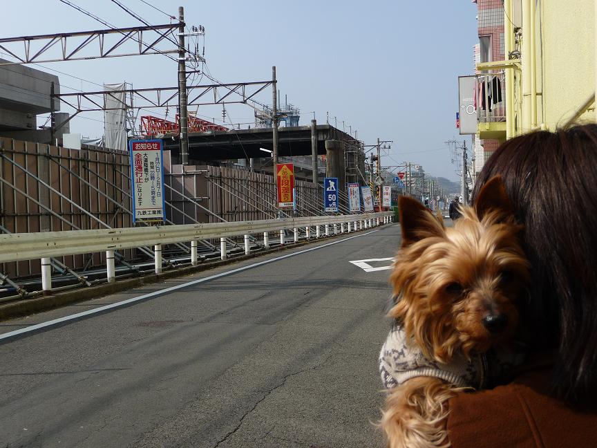 いつも陸橋の下をくぐってお散歩してたのに無くなってるぅ~
