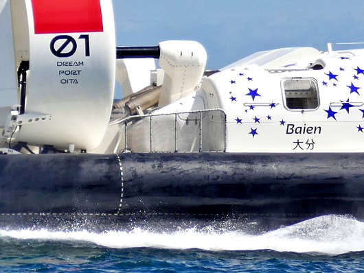 ホバークラフトは全部で3隻納入予定ですが、今現在納入されているのは1号艇の「Baien(バイエン)」のみです。ホバークラフトの船名は公募によって豊後(大分県)の三賢人と称される人の名前から名付けられていて、それぞれBaien(バイエン:三浦梅園)、Banri(バンリ:帆足万里)、Tanso(タンソウ:広瀬淡窓)となっています。