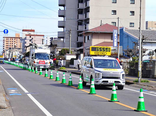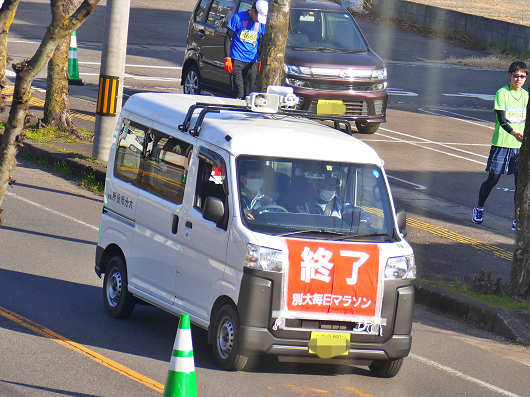 この車がやって来たら別大マラソンは終了です。毎年楽しみにしている別大マラソンですが、この何年かは新型コロナの影響もあって沿道での応援ができなかったので、久しぶりに参加選手を間近に見ながら応援をすることができました。