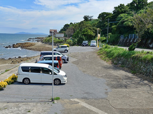 こちらは佐賀関半島方面の景色です。右の山側には国道197号が走っていて、駐車場は国道の海側にあります。そして海の先のほうを眺めたら、はるか沖には四国の佐田岬も見えていました。