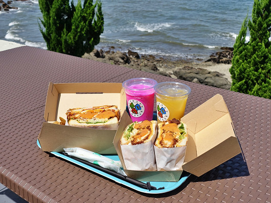 しばらく待っているとサンドイッチとドリンクが運ばれてきました。こういった軽食系の料理は景色のいい屋外で食べるのが最高ですね。