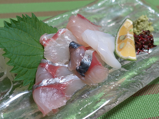 刺身はアジ、サバ、紋甲イカ、タイ、カンパチでした。どれも新鮮でとっても美味でした。