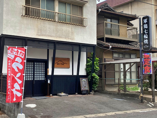 この日訪れたのは大分市萩原1丁目にある「軍鶏七輪焼 KITA」です。ここは萩原商店街を西側から入って100mほど進んだところにあります。