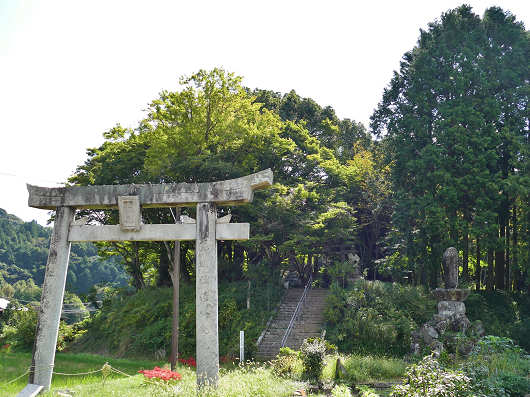 反射炉が建造されていたのは佐田神社の境内なので、これから佐田神社の一の鳥居を潜って境内へと向かいます。境内のこんもりと繁った樹木はまさに鎮守の森って感じですね。