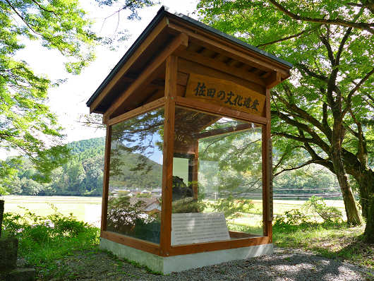 ガラス張りの建物には「佐田の文化遺産」と看板が掲げられていて、中には何かが展示されているようでした。