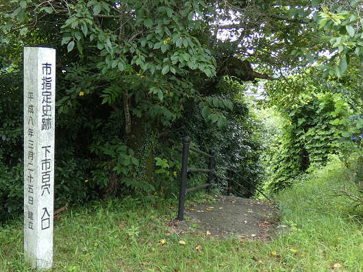 ここには駐車場のような広い空き地があったので、車を停めたらまずは横穴式古墳の「下市百穴」へと向かいました。