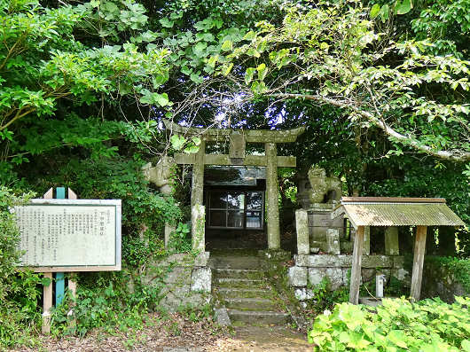 道は森の手前で行き止まりになっていますが、ここには小さな鳥居が建っていて、その奥には小さなお社もあるようでした。