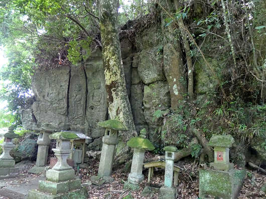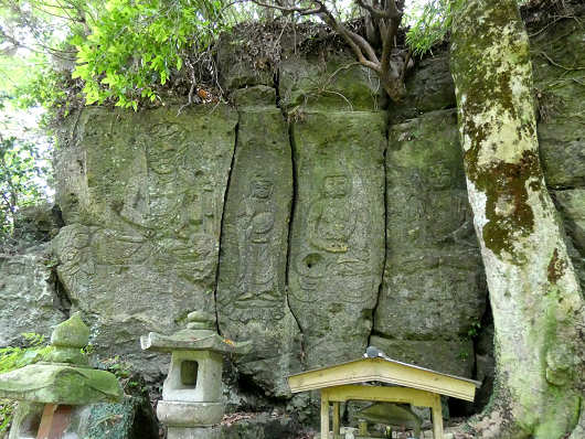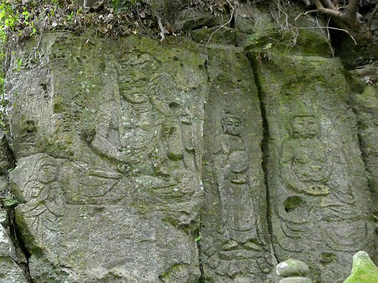 これが鳥居を潜った北東壁に彫られている7体の「下市摩崖仏」です。