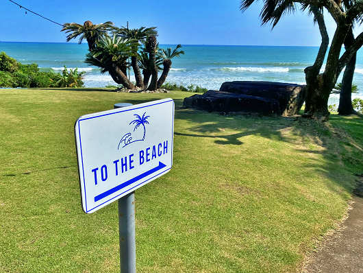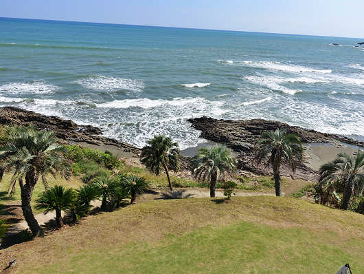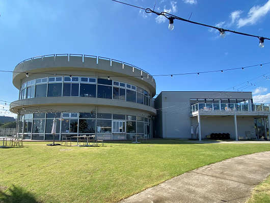 建物の裏手はきれいに手入れされた芝生広場になっていて、その先は果てしなく続く太平洋(日向灘)が広がっていますが、振り返って眺めた建物は、かつてのドライブイン太平洋の時と同じ円形で2階建ての建物だったので、この建物は取り壊して建て替えたんじゃなくて、元からあった建物を部分改装したんでしょうね?