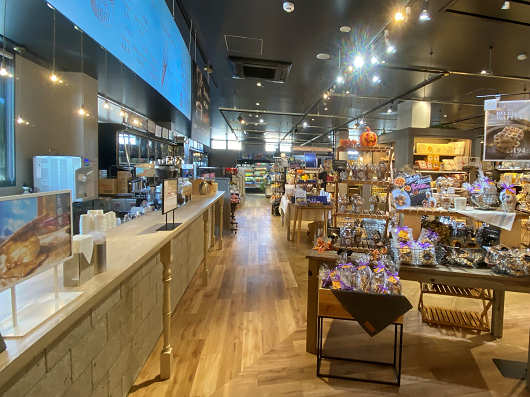 館内はこんな感じで、1階にはイタリアンやコーヒー、軽食などのお洒落なお店と、雑貨、お土産コーナーなどがありました。