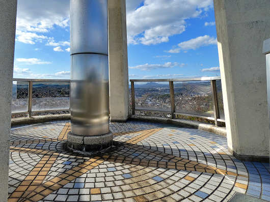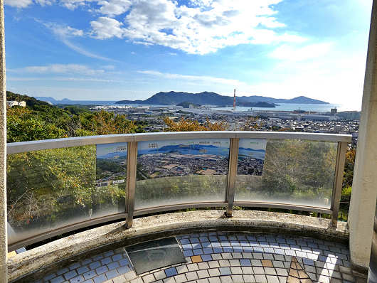 こちらは下松市街地方面の景色です。遠くには先ほど日本海側の萩市から越えて来たばかりの中国山地の山々も見えていました。そして画像には写っていませんが、この右側にはこれから向かうホテルも小さく見えていました。星の塔は下松市を見下ろす丘の上に建つ下松市のシンボルのような存在ですね。