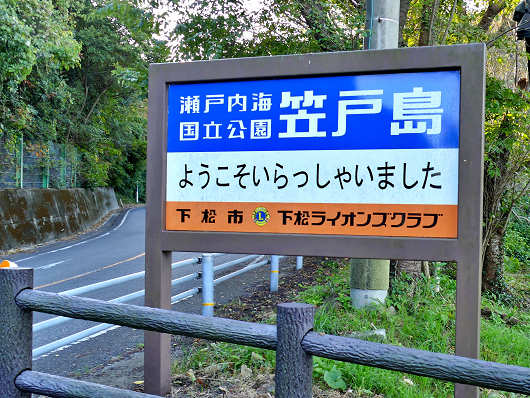 笠戸大橋を渡って笠戸島内を走る県道174号(笠戸島公園線)を数百mも進むと、道路沿いに展望所のようなスペースと、この様な看板が見えてきたのでここに車を停めました。