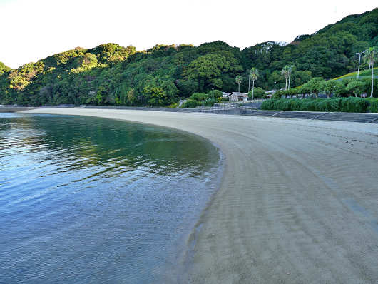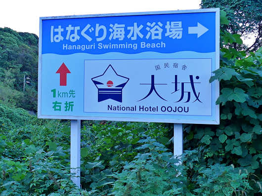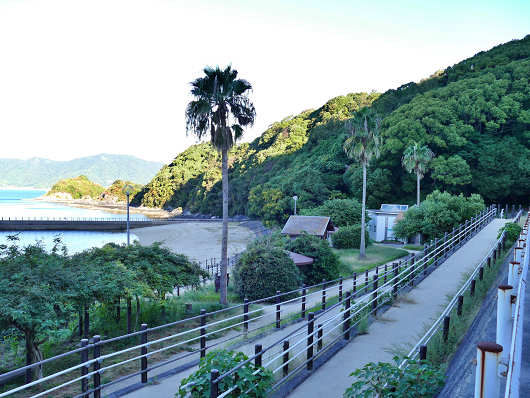 夕日岬を出発したら道はすぐに県道173号(笠戸島線)となって、数百mほど進むと「はなぐり海水浴場」と書かれたか標識が見えてきたのでここを右折して海岸へ出ました。