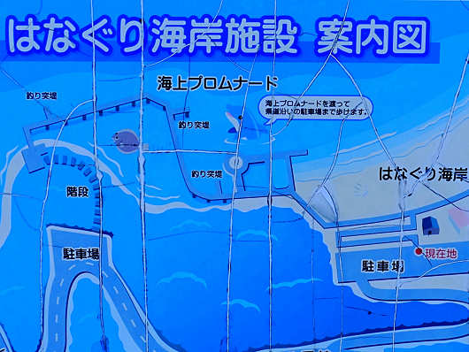 ここには「はなぐり海岸」の案内図もあったので、これから「海上プロムナード」と書かれたところへ行ってみます。