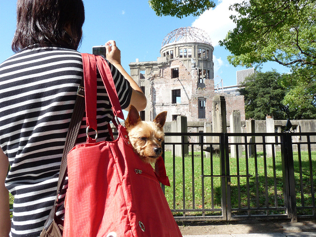 原爆ドームの前で、広島の原爆遺跡といえばやっぱり原爆ドームだよね、