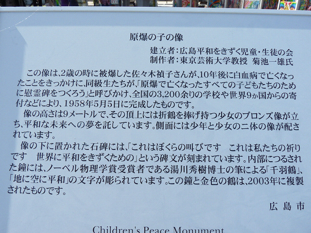 原爆の子の像の説明文です、画像をクリックすると大きくなるからね。