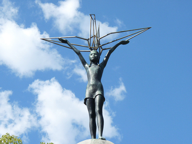 原爆の子の像です、この像が作られた背景にはとっても悲しい実話があるんだよ。