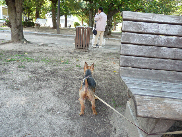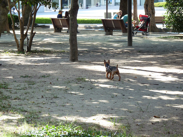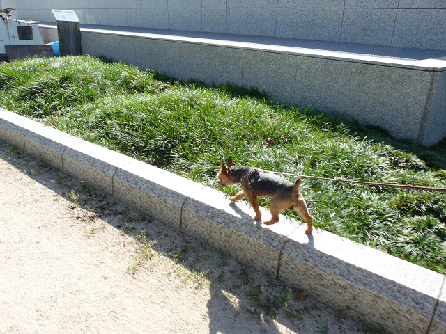 おっ、ここにもお散歩中のワンちゃんがいるよ、